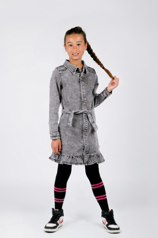 Perfect voor school, een dagje uit of gewoon thuis: met de Dilan Denim Jurk straalt jouw meisje altijd!