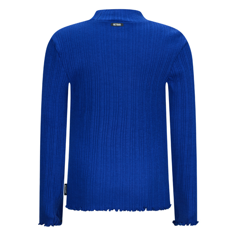 Wauw, met de Retour VIVRE top uit de nieuwe collectie mag je zeker gezien worden! Deze longsleeve is uitgevoerd in opvallend kobaltblauw en gemaakt van een comfortabele ribgebreide stretchstof die heerlijk meebeweegt. De col en het subtiele RJ-logo op de borst zorgen voor een stijlvolle, maar toch sportieve look.